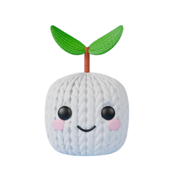 Su textura simulando lana tejida y su pequeño brote verde transmiten calidez y frescura, perfecta para decorar escritorios, estanterías o rincones especiales.