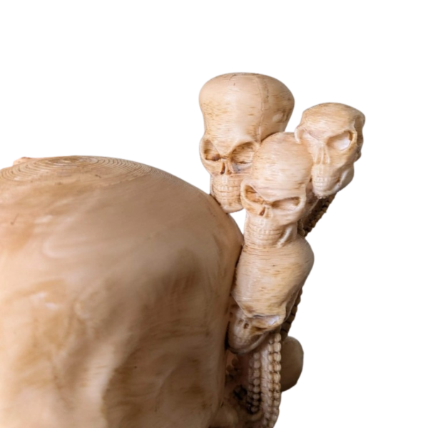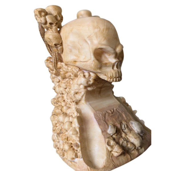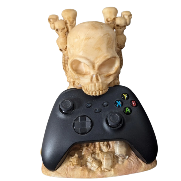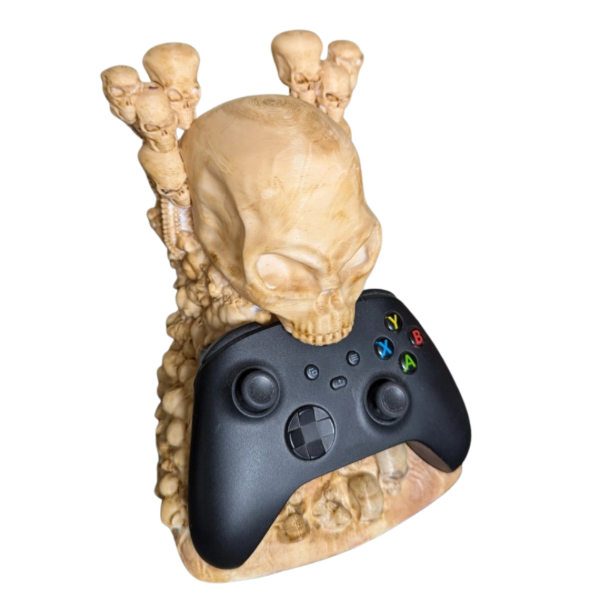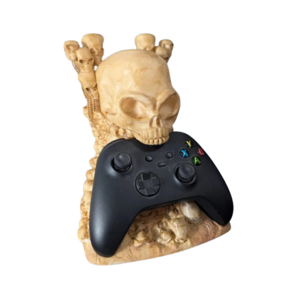 Su diseño de calavera tallada y detalles en hueso lo convierten en una pieza única para tu setup gamer. Ideal para mandos de Xbox, PlayStation o PC, combina funcionalidad con una estética imponente.