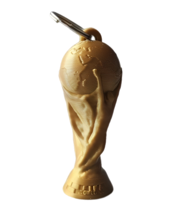 Este llavero en forma de Copa del Mundo está impreso en 3D con excelente nivel de detalle. Compacto y resistente, es el accesorio perfecto para fanáticos del fútbol que quieren llevar su pasión a todas partes.